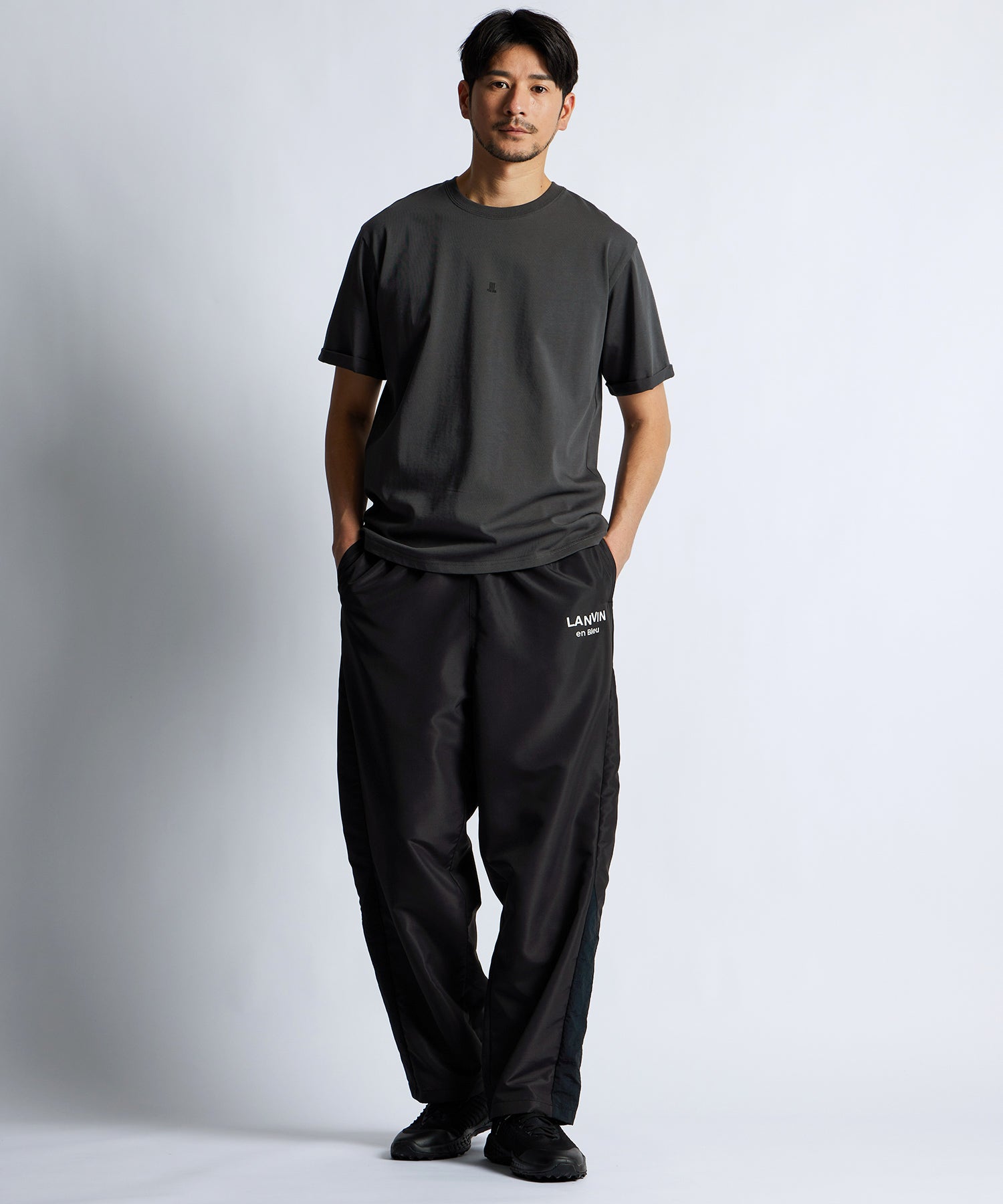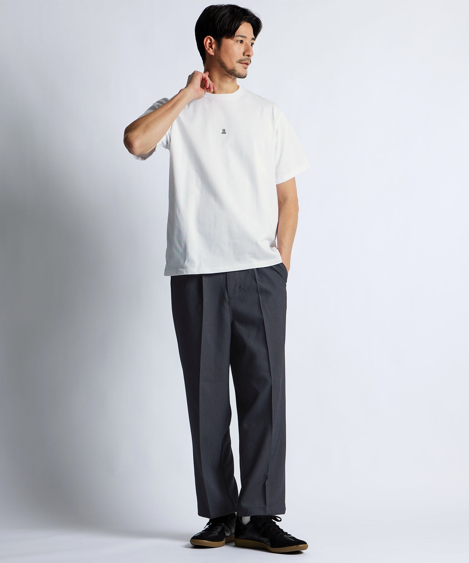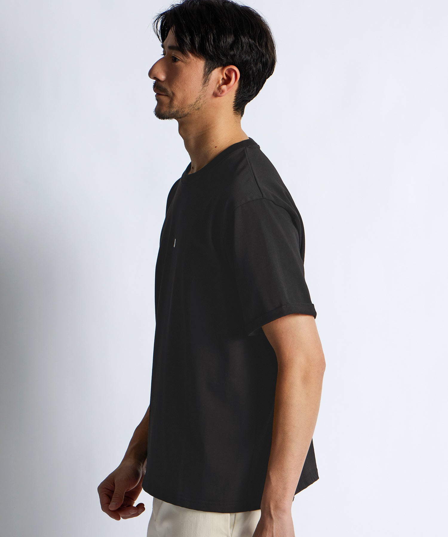 胸元中央に配置したワンポイントロゴが、シンプルな中にさりげないアクセントをプラスします。
