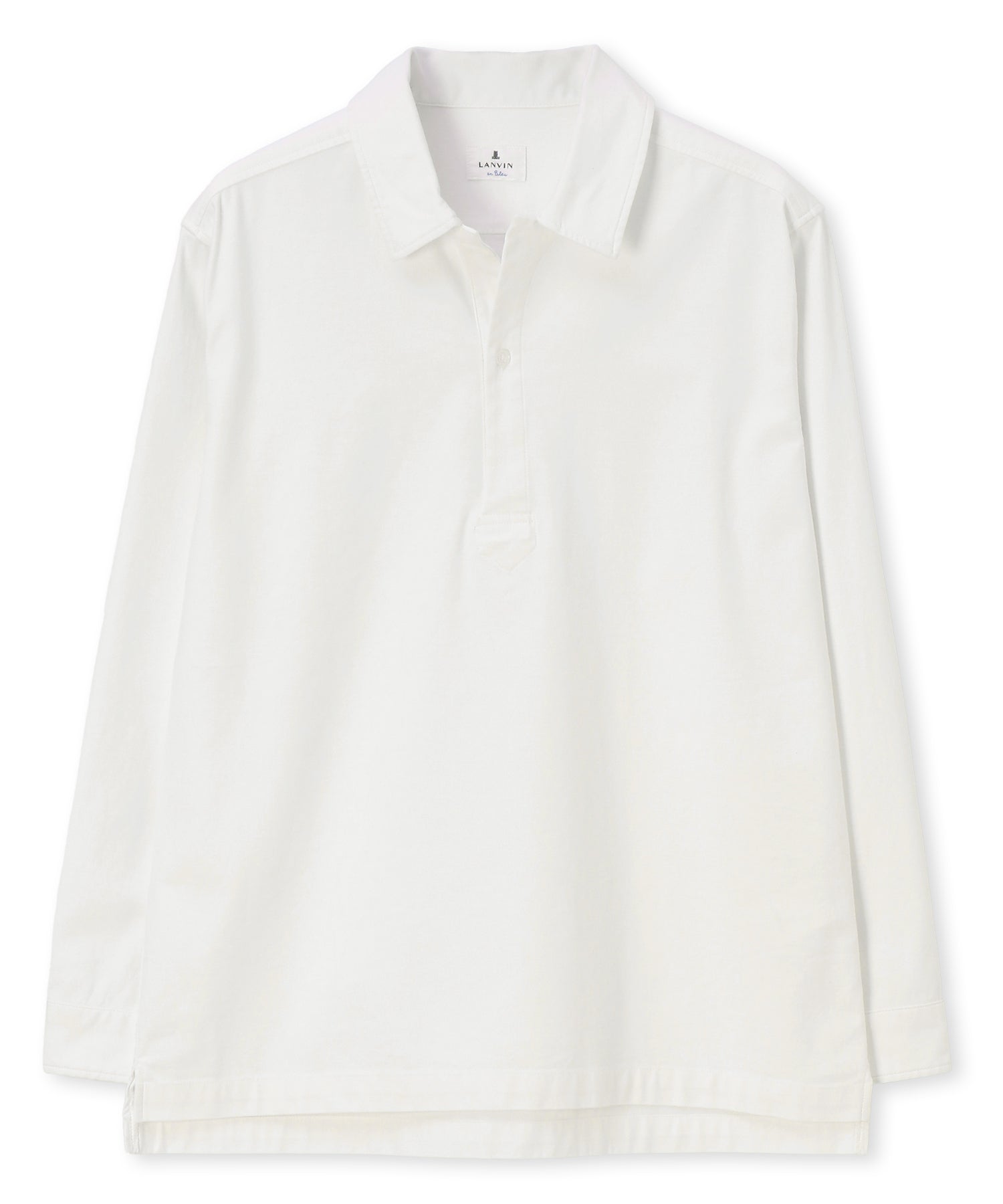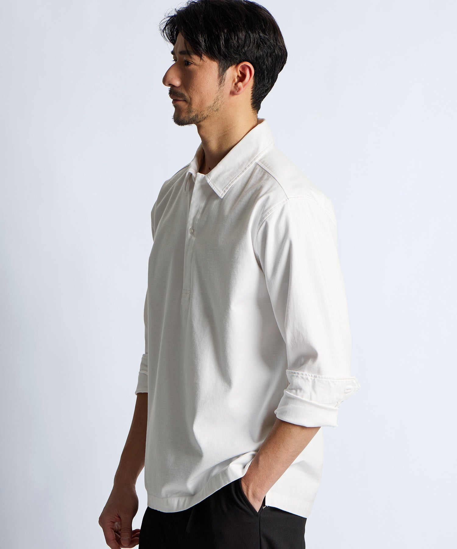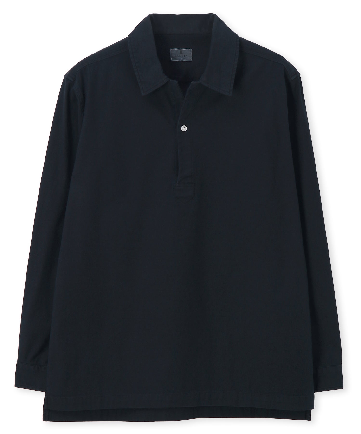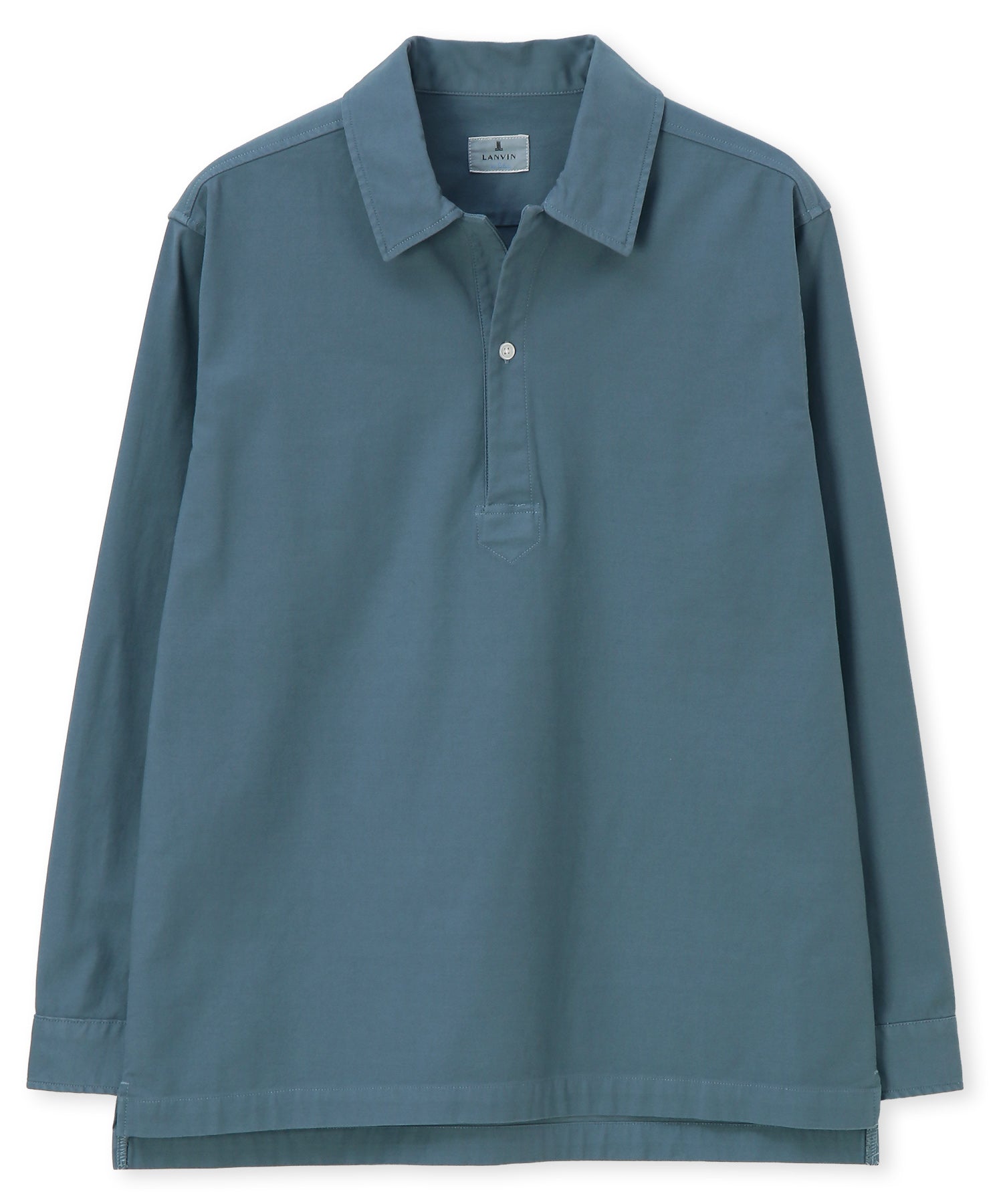 フロントのボタンを胸元あたりまでに設定した、かぶりで着用するプルオーバータイプのシャツ。