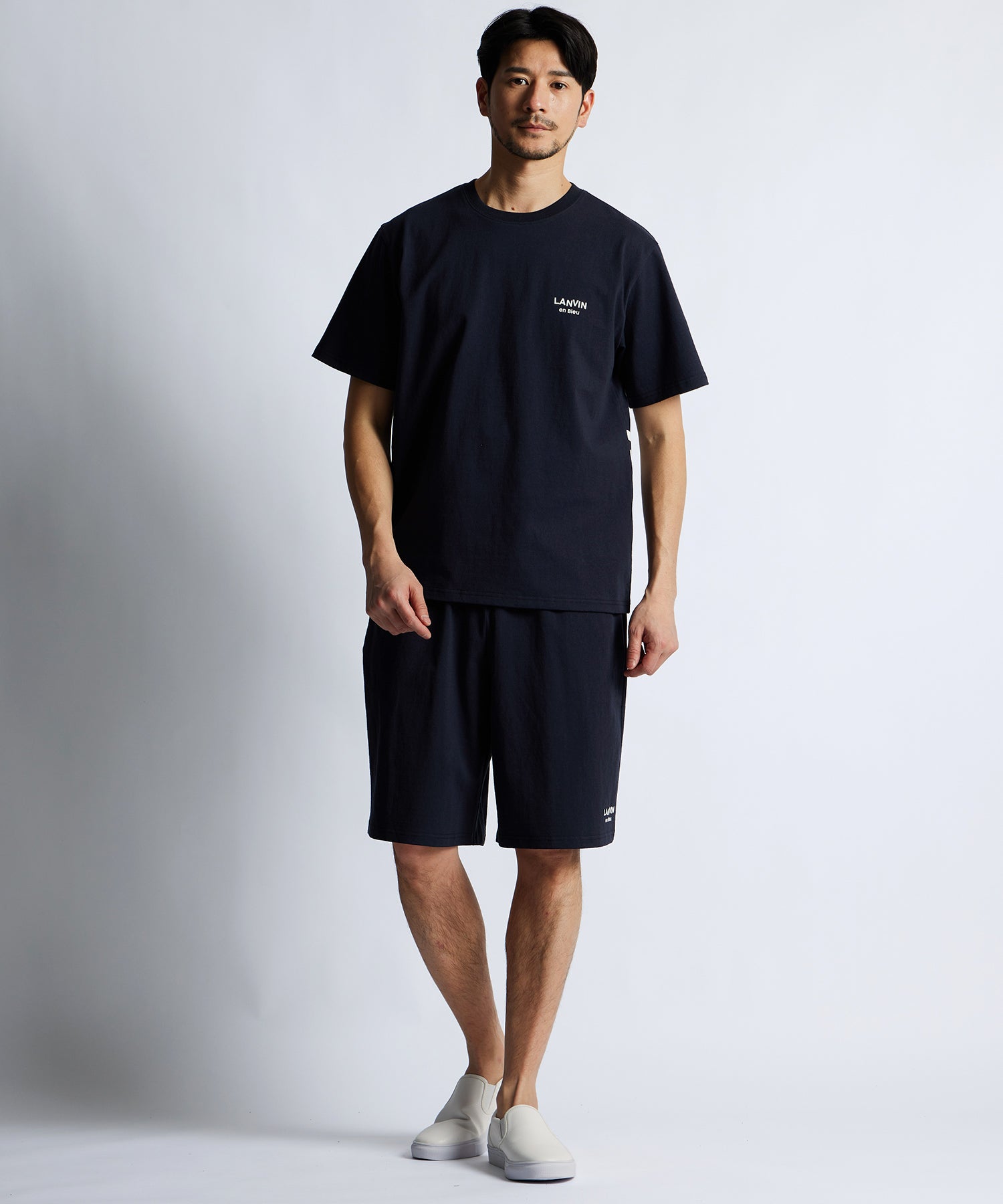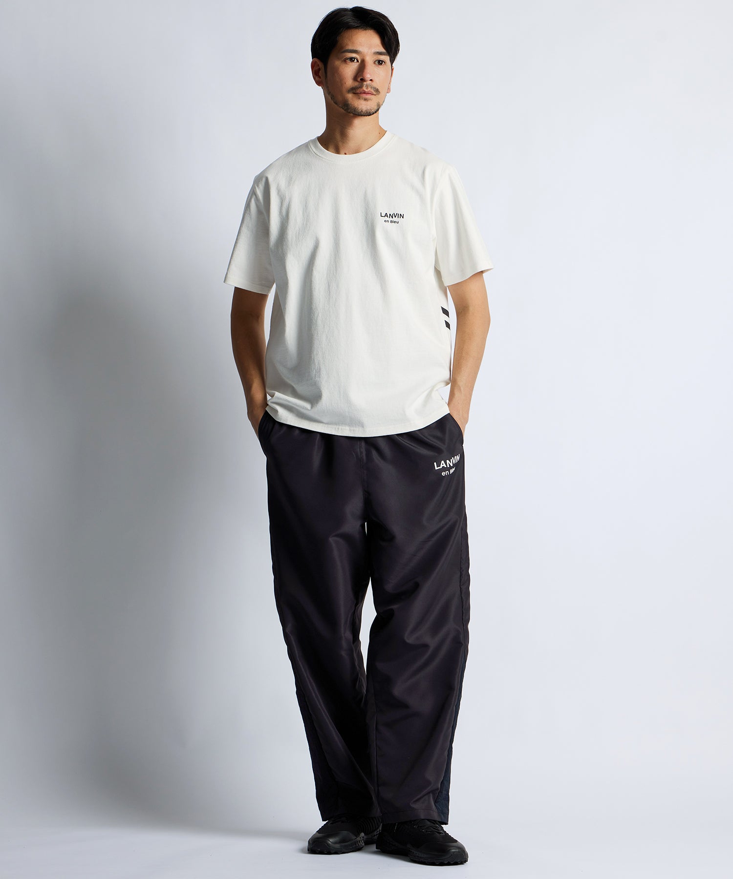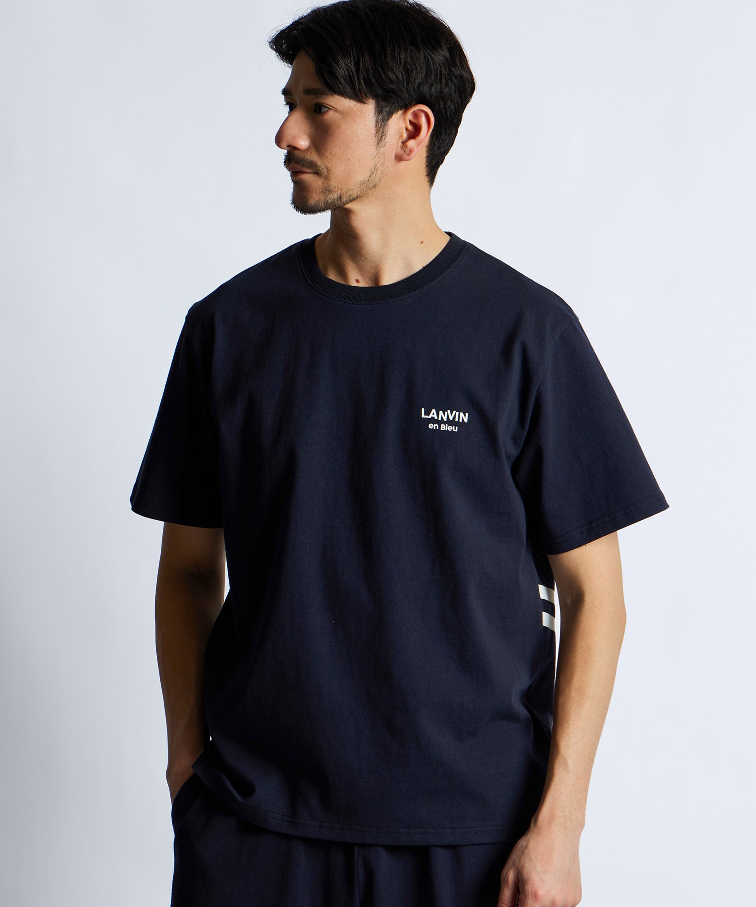 パリ・ランバン創業者である、ジャンヌ・ランバンの頭⽂字である「J」と「L」。その「J」と「L」を組み合わせたLANVIN en Bleuのシグネチャーロゴである『ダブルJL』マーク。そのロゴを個性的にアレンジし大胆にデザインしています。レギュラーフィット。